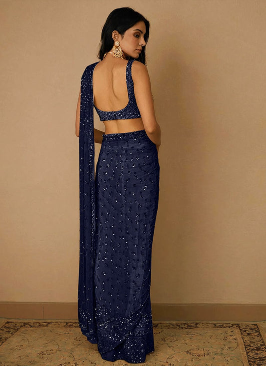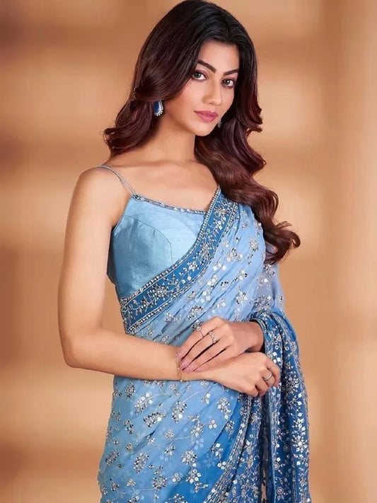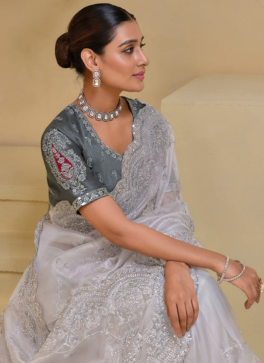Grey Soft Shine Zarkan Embroidered Sequin Bead Work Saree